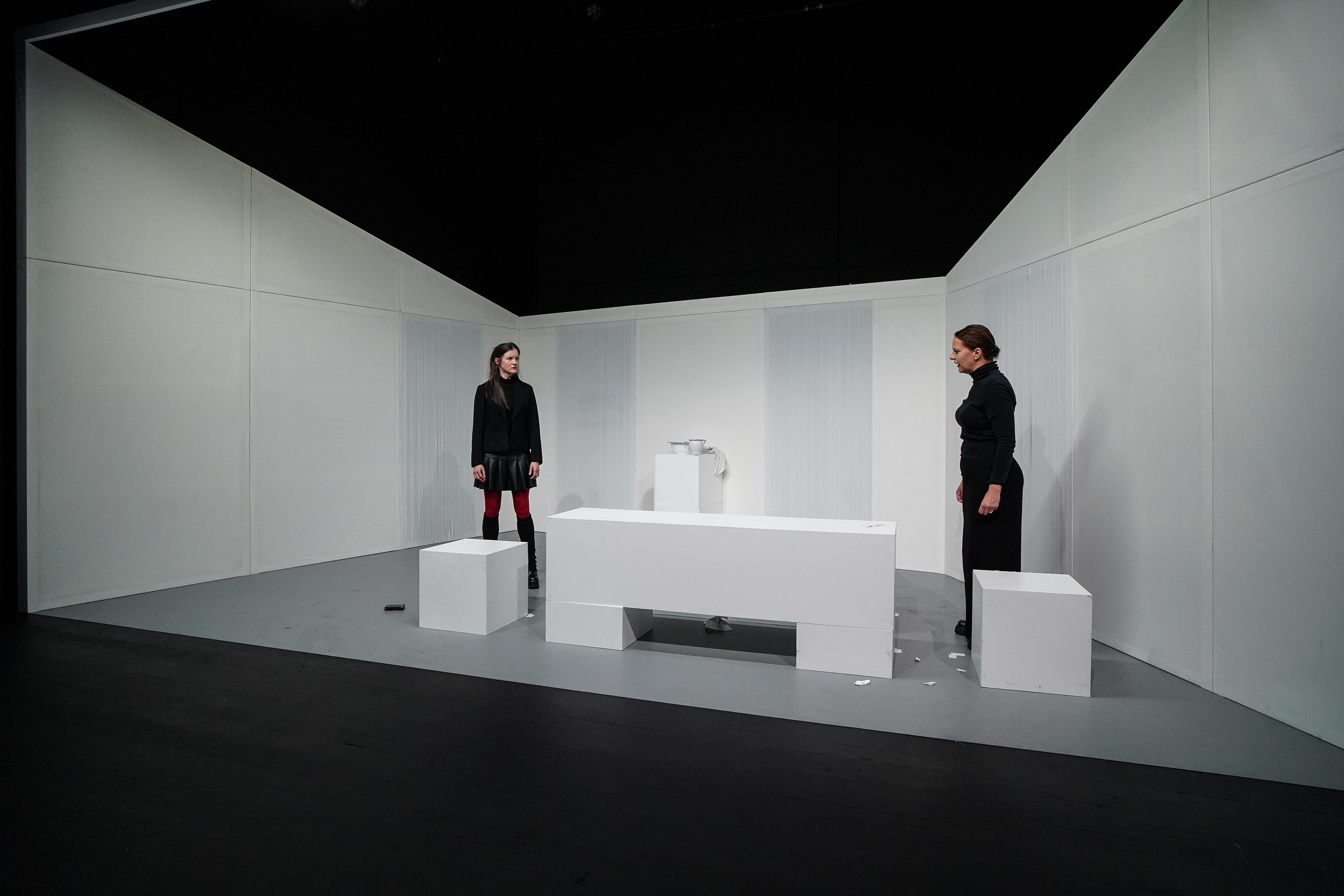 Die Kieler Inszenierung unter Max Claessens Regie nutzt die Intimität der Studiobühne perfekt aus. Magdalena Hartungs minimalistisches Bühnenbild konzentriert den Fokus vollständig auf die Schauspieler:innen – und das zahlt sich aus. Christian Kämpfer und Isabel Baumert verkörpern das Ehepaar Covey mit einer Authentizität, die das Publikum von der ersten Minute an vereinnahmt. Nicht minder beeindruckend agiert Tristan Taubert als William Bloor. Er meistert den schwierigen Balanceakt zwischen dem kaltblütigen Funktionär und dem Menschen, der selbst Gefangener des Systems ist. Jennifer Böhm komplettiert als Sarah Box ein Ensemble, das nicht nur perfekt aufeinander eingespielt ist, sondern auch die emotionale Bandbreite des Stücks voll ausschöpft.